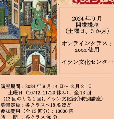 イラン.イスラム共和国大使館文化部主催.イランサアディ財団支援の第27期ペルシャ語講座は、引き続きオンライン講座で2024年9月から開講いたします。