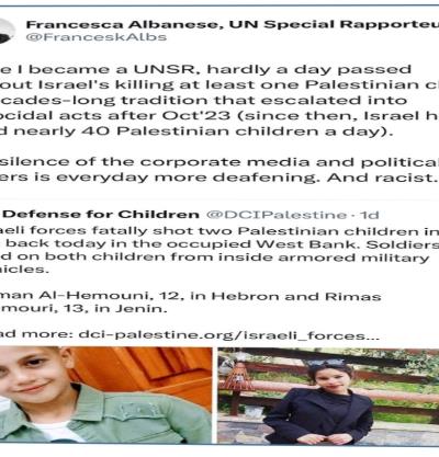 フランチェスカ・アルバネーゼ氏のパレスチナ人子供の殺害に関するツイート