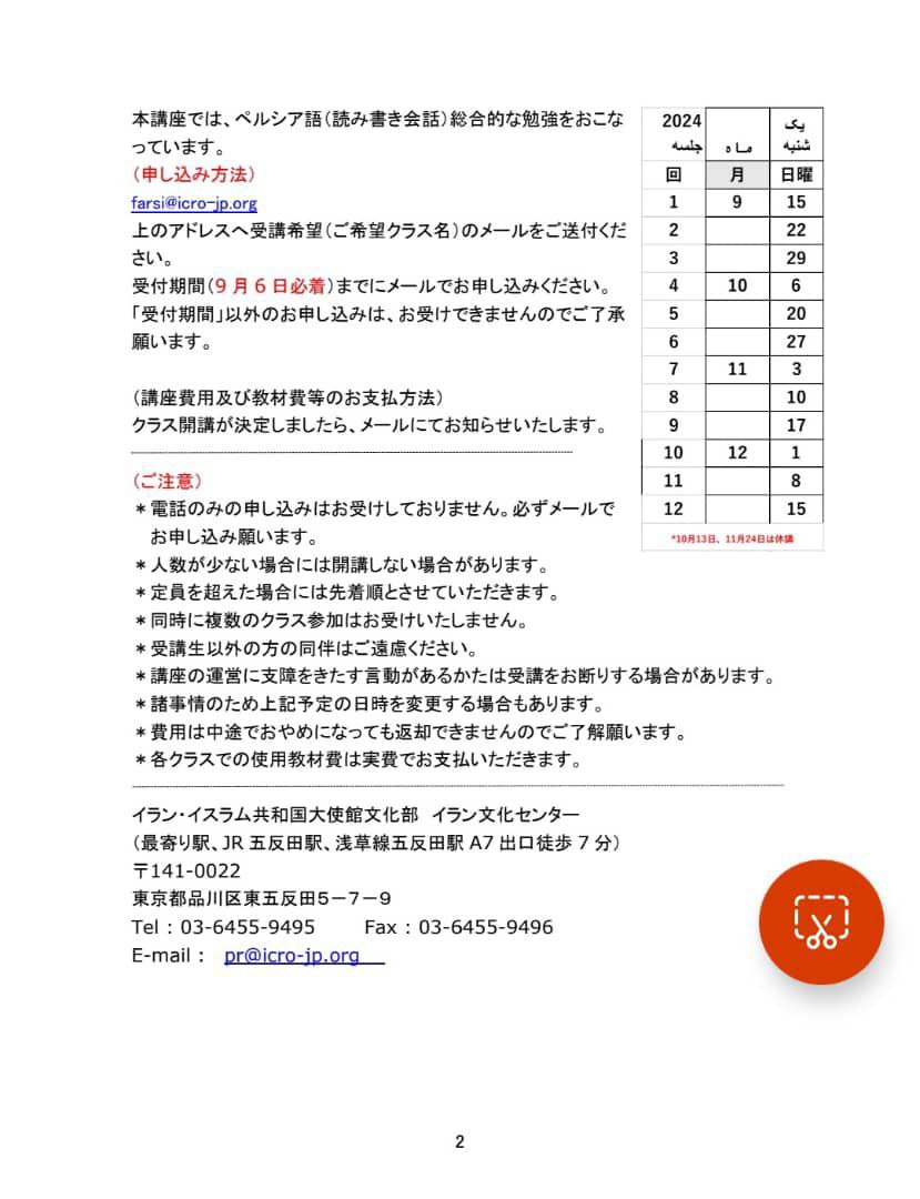 ペルシャ語講座のお知らせ